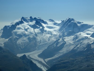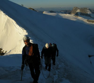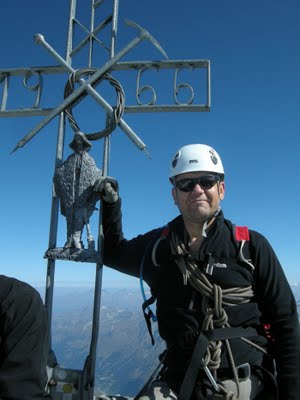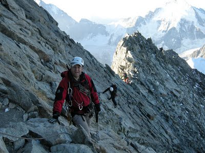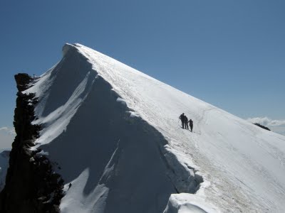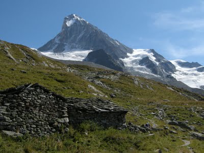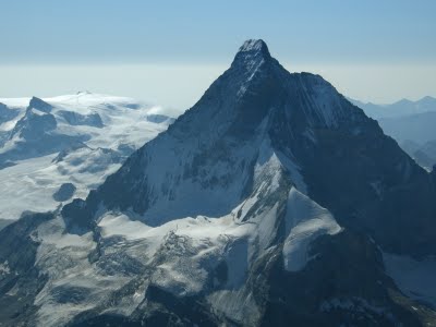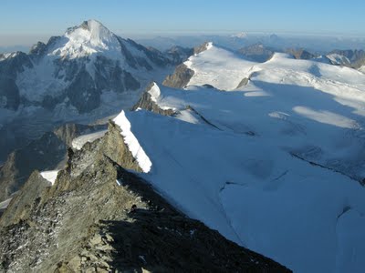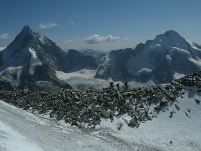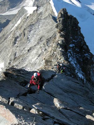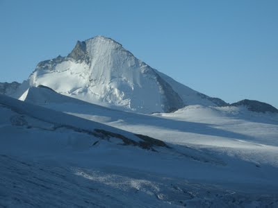 The good weather continues and provided a perfect day on one of the best ridges in the Alps. Our trip over three days succeeded on the South Ridge of the Dent Blanche. In this photo below it is the easier angled right hand crest.